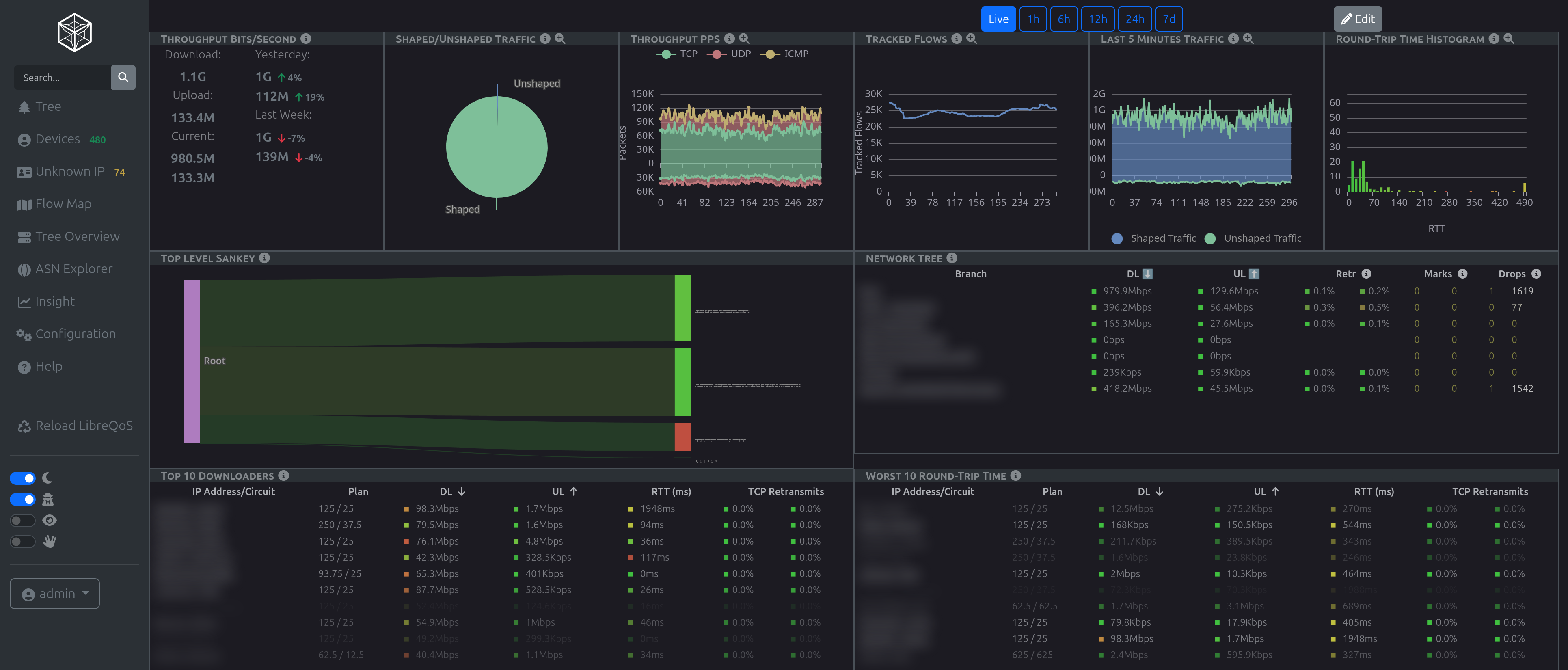 LibreQoS Insight is the successor to our Long Term Stats (LTS) service. Insight was designed from the ground up to accommodate multi-shaper networks, providing high-resolution data on TCP Round Trip Time, TCP Retransmits, Throughput, Flows, ASN Stats, CAKE stats, Geographic Endpoint stats, as well as data on protocol, ethertype, and utilization percentages.